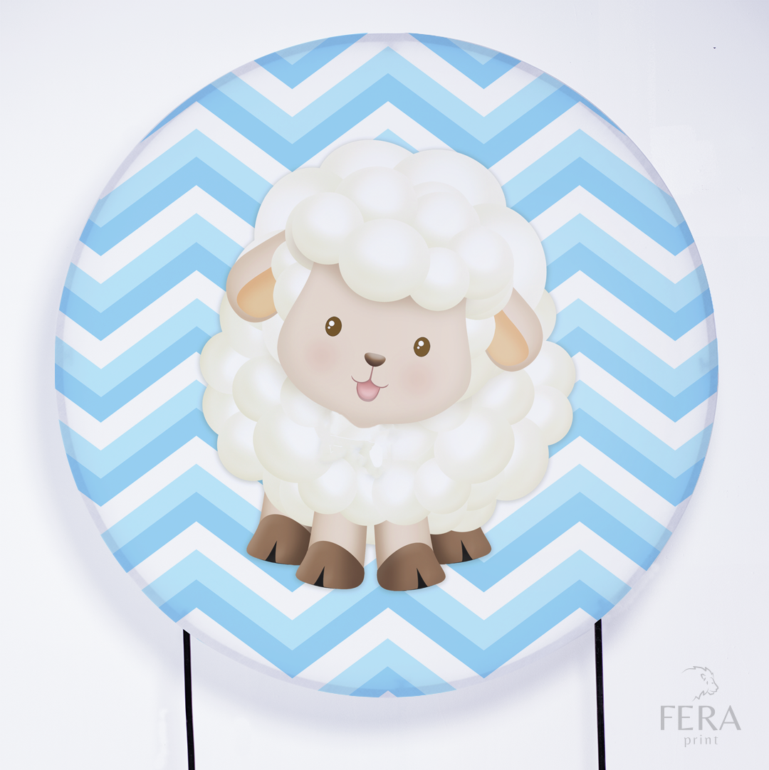 Painel Redondo Ovelhinhas Azul Zig Zag Sublimado
