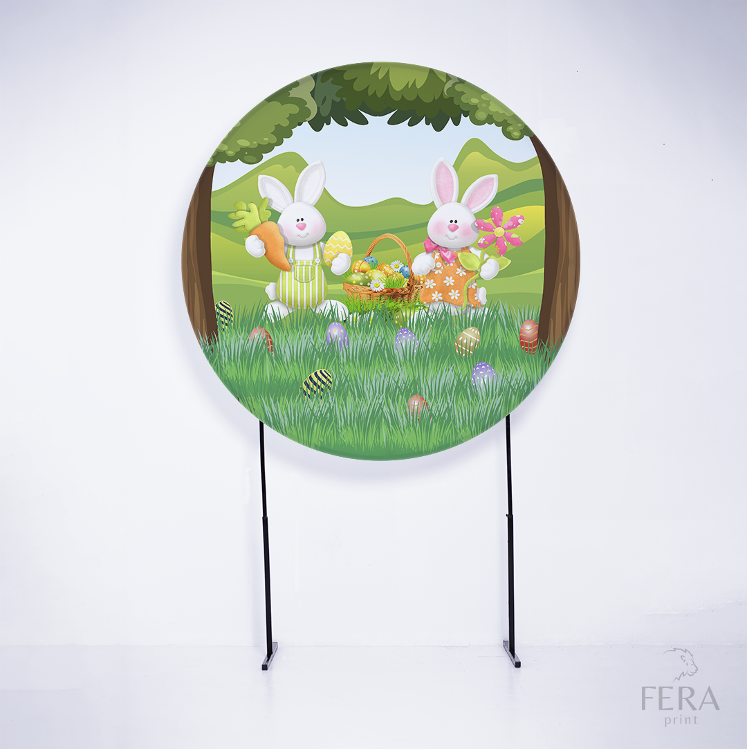 Painel Redondo Páscoa Coelhos Floresta Sublimado