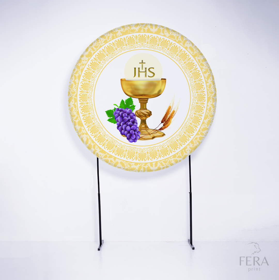 Painel Redondo Primeira Eucaristia Dourado Sublimado