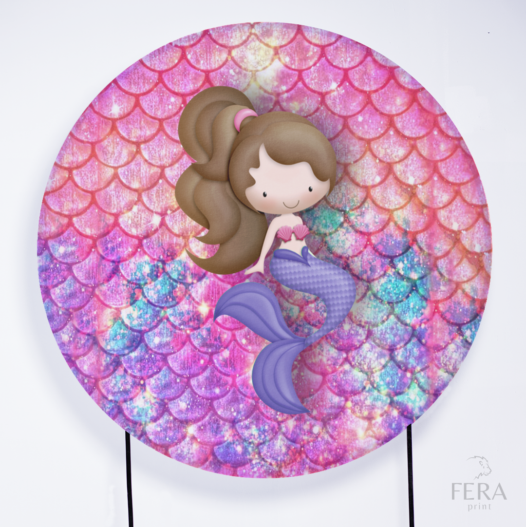 Painel Redondo Sereia Escama Rosa Sublimado