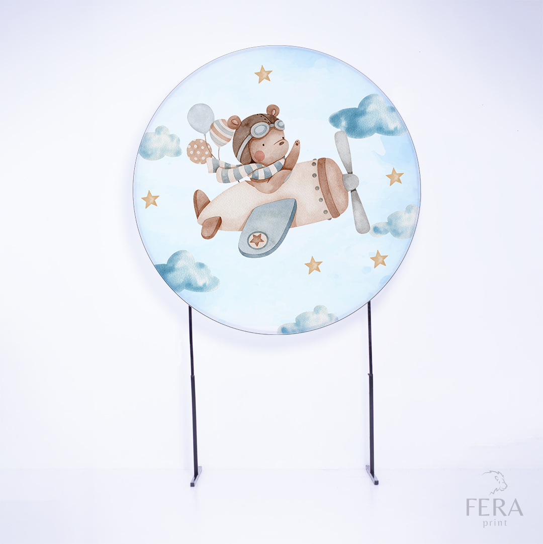 Painel Redondo Urso Avião Azul Sublimado