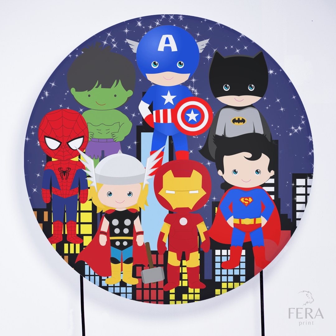 Painel Redondo Heróis Desenho Cidade Sublimado